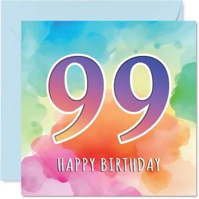 99th Birthday Cards for Women Men Colourful Watercolour Age Happy Card 99 Year Old Woman Man Auntie Uncle Grandad Nanny, 145mm Bday Greeting
