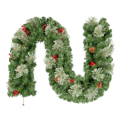 9ft/2.7m Christmas Garland with Berries & Cones, Artificial Xmas for Wall/Stairs/Fireplace/Front Door