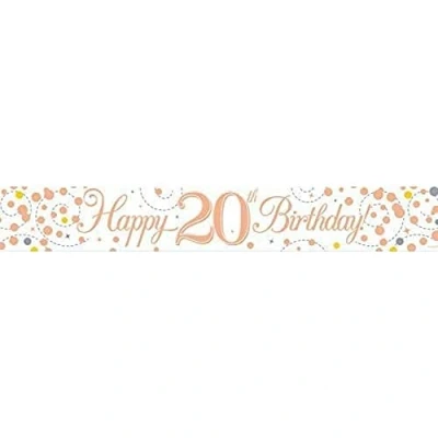 9ft Banner Sparkling Fizz 20th Birthday White & Rose Gold Holographic (Pack of 2)