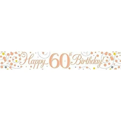 9ft Banner Sparkling Fizz 60th Birthday White & Rose Gold Holographic (Pack of 2)