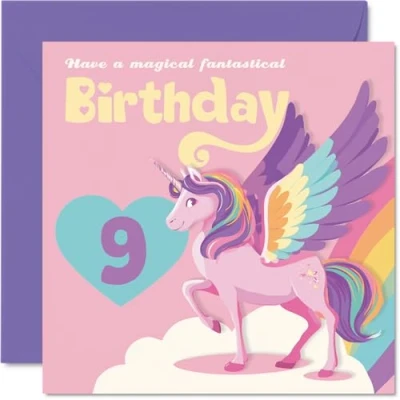 9th Birthday Cards for Girls Magical Fantastical Happy Card 9 Year Old Girl Goddaughter Sister Step Daughter Granddaughter, 145mm Bday Greeting