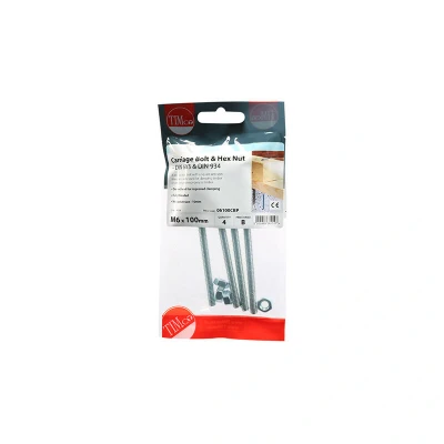 9x TIMCO Carriage Bolts & Hex Nuts Zinc 06100CBP Pack of 4