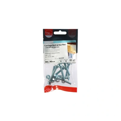 9x TIMCO Carriage Bolts & Hex Nuts Zinc 0640CBP Pack of 8