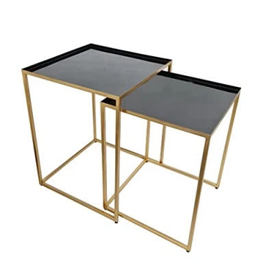 A ASPECT Handcrafted Myla Metal Nest Of 2 Nesting Table (Black/Gold)