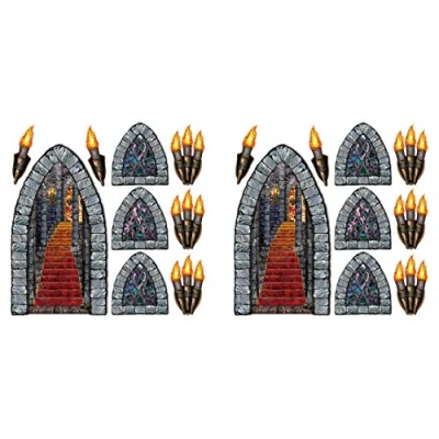 A Beistle Creation S00912AZ2 Stairway, Window & Torch Props 18 Piece, Plastic, Multicolor
