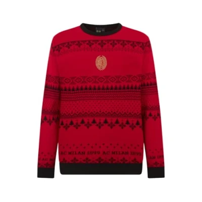 A.C. Milan Christmas Jumper, Fantasy in Soft and Comfortable Cotton, Official Unisex Product, M Red