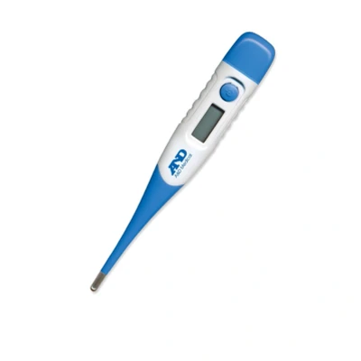 The A&D Medical UT-113 Digital Flex Tip Thermometer offers fast, accurate temperature readings with a soft, flexible tip for safe, comfortable use. Featuring a water-resistant sensor, dual°C/°F display, memory recall, and auto power-off, it's suitable for oral, underarm, or rectal measurement.