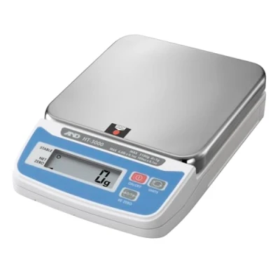 3100 g x 1 g. Battery operation with 4 AAbatteries (included), up to 500 hours run time. Includes storage box, stackable case takes up less space for storage, anti-theft Large LCD display with clearly visible characters (13.5mm) 1-year A&D warranty
