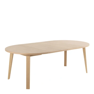 Product details Modern Scandinavian round dining table with white oak veneer top and sturdy legs. Lightweight, contemporary design with natural texture for a sleek look, complete with extension leaves for added flexibility and spacious entertaining A modern take on classic Scandinavian design. Flat-packed for easy transportation. White pigmented oiled finish for a clean look. Extension leaves Included. Comfortably seats 4 people. Seats upto 6 people with extension leaves. Product Specifications Dimensions: 75cm (H) x 220cm (W) x 120cm (D) Finish: White Oak Range: A-Line Total weight: 71.4kg Shop this and other quality bedroom furniture at Bed Kings. Explore expertly crafted bedroom furniture designed for style, comfort and everyday living, with all orders benefiting from free delivery.