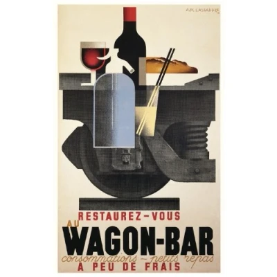 A.M. Cassandre "Wagon Bar Canvas Print, Multi Colour, 60 x 80 cm