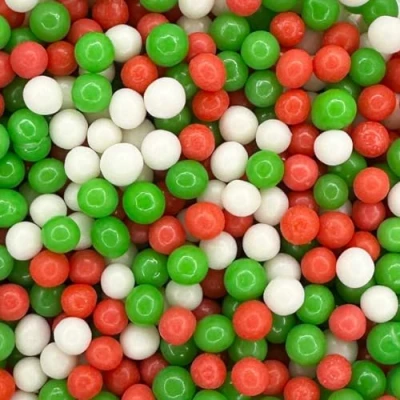 CHRISTMAS THEMED CAKE DECORATIONS - Add some festive-inspired sugar pearls to your baked goods. This mix includes red, green and white 4mm pearls with a smooth polished finish. FESTIVE XMAS MIX - This 30g pouch of red, green and white 4mm pearl cake decorations contains 4mm polished ball sprinkles in seasonal colours, the perfect decoration for any Christmas Eve party, Christmas Day desserts and ice cream. FOR ALL FESTIVITIES - Add a touch of festive cheer to your cakes and birthday celebrations with our festive Christmas cake sprinkles. You can even use these Christmas baking decorations as hot chocolate sprinkles! ADD TO ALL CHRISTMAS TREATS - These exquisite sprinkles are an excellent choice for embellishing yule logs, gingerbread houses, traditional Christmas cakes, Christmas cupcakes, cakes, cookies, Christmas cookie decorations, macarons, biscuits, and doughnuts. HAND PACKAGED IN THE UK - Our UK-based headquarters meticulously hand-packages each 30g pouch of Christmas cupcake decorations, ensuring that every little bag is carefully selected just for you. THE PERFECT AMOUNT - Each 'A Pinch Of' pouch of Xmas cake decorations contains just enough for a single cake or up to 12 cupcakes avoiding the cupboards full of spare sprinkles. DIETARY: Our Red, Green and Whiter 4mm Polished Pearl sprinkles are not suitable for Vegetarians. Contains Wheat