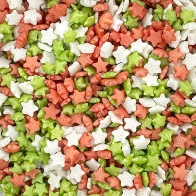 CHRISTMAS THEMED CAKE DECORATIONS - Add some festive inspired sugar stars to your baked goods. This mix includes mini green, red and white stars with a glimmer finish. The perfect decoration for any Christmas Eve party, Christmas Day desserts or festive event, like an office Christmas party FESTIVE MIX - This 25g pouch contains Christmas sprinkles in seasonal colours. ALL OCCASIONS - Perfect for adding a touch of festive cheer to your cakes and birthday celebrations with festive themes. VERSATILE PRODUCT - These exquisite sprinkles are an excellent choice for embellishing yule logs, gingerbread houses, traditional christmas cakes, cupcakes, cakes, cookies, macarons, biscuits, and doughnuts. Elevate the allure of your cake drip creations by adding these gorgeous sprinkles as a finishing touch. HAND PACKAGED - Our UK-based headquarters meticulously hand-packages each 25g pouch, ensuring that every little bag of cake sprinkles is carefully selected just for you.