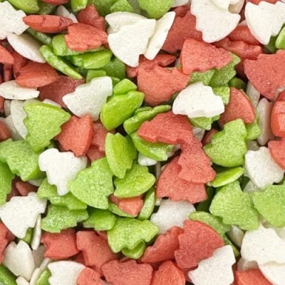 CHRISTMAS THEMED CAKE DECORATIONS - Add some festive-inspired sugar shapes to your baked goods. This mix includes red. green and white Christmas trees with a glimmer/shimmer finish. FESTIVE XMAS MIX - This 25g pouch of Christmas tree cake decorations contains Christmas tree sprinkles in seasonal colours, the perfect decoration for any Christmas Eve party, Christmas Day desserts and ice cream. FOR ALL FESTIVITIES - Add a touch of festive cheer to your cakes and birthday celebrations with our festive Christmas cake sprinkles. You can even use these Christmas baking decorations as hot chocolate sprinkles! ADD TO ALL CHRISTMAS TREATS - These exquisite sprinkles are an excellent choice for embellishing yule logs, gingerbread houses, traditional Christmas cakes, Christmas cupcakes, cakes, cookies, Christmas cookie decorations, macarons, biscuits, and doughnuts. HAND PACKAGED IN THE UK - Our UK-based headquarters meticulously hand-packages each 25g pouch of Christmas cupcake decorations, ensuring that every little bag is carefully selected just for you. THE PERFECT AMOUNT - Each 'A Pinch Of' pouch of Xmas cake decorations contains just enough for a single cake or up to 12 cupcakes avoiding the cupboards full of spare sprinkles. DIETARY: Our Red, Green and White Christmas Tree sprinkles are not suitable for Vegetarians.