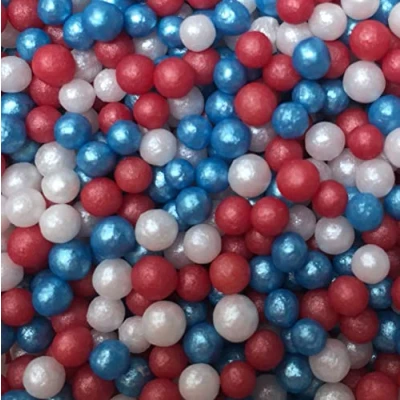 Red, White & Blue Glimmer Pearls. A beautiful glimmer pearl mix that will be the ideal finishing touch to all of your Coronation, Royal and 4th of July cakes and bakes. Part of our Great British Range, all of your bakes, Great British Bake Off style showstoppers and goodies - cupcakes, cakes, muffins, cookies, cake pops, biscuits, doughnuts or any other dessert you can think of! This wonderful sprinkle shape is packed by hand into resealable pouches in the Welsh/Herefordshire borders. With views across beautiful Shropshire and Herefordshire you cant get better inspiration These versatile cake sprinkles are made in single colours in Germany and mixed into many different themed and seasonal offerings in our own factory in Herefordshire. If we dont already have a mix that you are looking for get in touch and let us know, it may be our next new product! All of our delicious cake sprinkles are made within Europe with our main manufacturing partners being based in Greece, Germany, Holland and Northern Ireland. We also export around the world and have a full range of products without E171 suitable for the European market.
