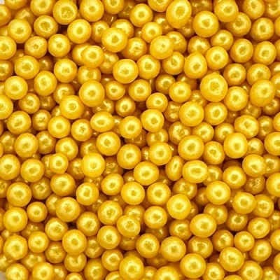 A Pinch Of Pearls Glimmer Gold Cake Topper Sprinkles 30g Edible Shimmer Ball Cupcake Decorations Perfect for Weddings, Christenings & Parties