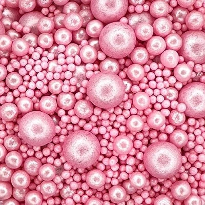 PEARL MIX CAKE SPRINKLES - A beautiful mix of glimmer Pink pearls. Create a dramatic, encrusted effect on large cakes and sprinkle on cupcakes for a decadent decoration. MIXED SIZE EDIBLE PEARLS - This 30g pouch includes various-sized pink sprinkles, including 100's and 1000's and 2mm-7mm pearls. ALL OCCASIONS - Perfect for adding a touch of enchantment to your cakes. Perfect for weddings, christenings, anniversaries, baby showers and birthdays. SHIMMERING DESIGN - High shimmer pearls in this lovely mix give a stunning twinkly finish. VERSATILE PRODUCT - These exquisite sprinkles are an excellent choice for embellishing cupcakes, cakes, cookies, macarons, biscuits, and doughnuts. Elevate the allure of your cake drip creations by adding these gorgeous sprinkles as a finishing touch.