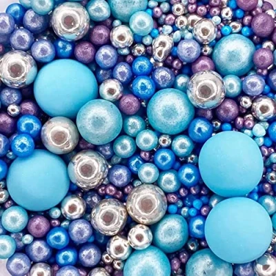 A Pinch Of Pearls Mix Twinkle Mermaid Cake Topper Sprinkles 30g Edible Pearl Ball Cupcake Decorations Metallic Shimmer Purple, Blue & Silver