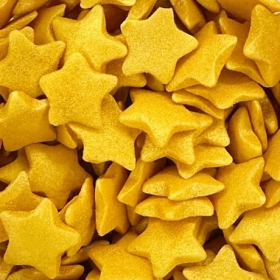 JUMBO STARS - Showstopping jumbo gold stars, measuring approximately 10-12mm from point to point. Create a dramatic encrusted effect on large cakes and sprinkle on cupcakes for a decadent decoration. ALL OCCASIONS - Perfect for adding a touch of seasonal cheer to your cakes. Perfect for office parties, celebration cakes, yule logs and chocolate bark SHIMMERING DESIGN - This mix has a pretty glimmer finish. VERSATILE PRODUCT - These exquisite sprinkles are an excellent choice for embellishing cupcakes, cakes, cookies, macarons, biscuits, and doughnuts. Elevate the allure of your cake drip creations by adding these gorgeous sprinkles as a finishing touch. HAND PACKAGED - Our UK-based headquarters meticulously hand-packages each 25g pouch, ensuring that every little bag of cake sprinkles is carefully selected just for you.