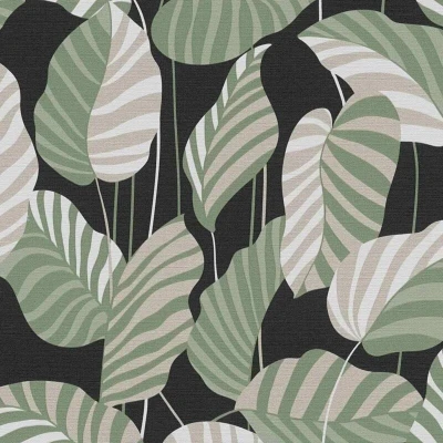 Make a confident style statement in your home with this striking botanical leaf wallpaper, designed to bring depth, contrast and contemporary elegance to your walls. Featuring oversized, stylised leaves in soft sage green, muted beige and gentle off-white tones, the design sits against a rich dark background that enhances the pattern’s bold silhouette and graphic appeal. The flowing leaf shapes and layered colour detailing create a strong sense of movement while maintaining a balanced, cohesive look. The textured surface adds a subtle fabric-effect finish, giving the wallpaper a premium feel and helping the colours appear richer and more dimensional once applied. This tactile quality not only elevates the visual impact but also helps disguise minor wall imperfections, delivering a smooth and refined result. Ideal for feature walls or full room applications, this wallpaper works beautifully in living rooms, bedrooms, dining areas and home offices. Its modern botanical style suits a