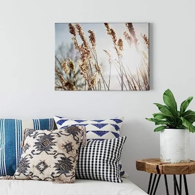 A.S. Création Canvas Painting Herbe de la Pampa Blue Beige Art Print 70x50 cm Landscape Living Room Wall Decor Picture on Frame