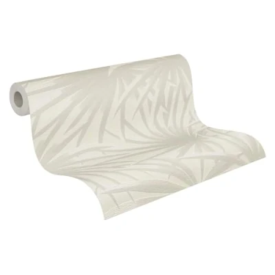 A.S. Création Casual Living 393381 Wallpaper Palm Leaves Cream Light Grey High Quality Non Woven for Bedroom 10.05 m x 0.53 Made in Germany