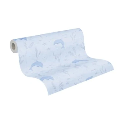 A.S. Création Children's Room Wallpaper Lilly & Luis Durable Non Woven with Fish Design, 10,05 m x 0,53 m, Blue and White, Made in Germany, 771321.