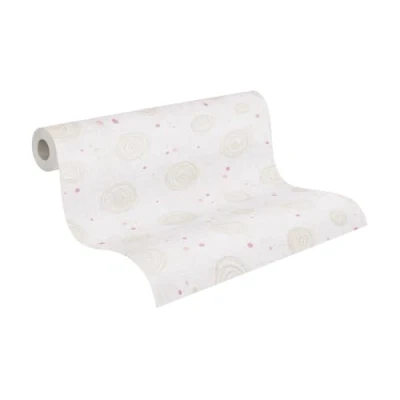 A.S. Création Children's Room Wallpaper Lilly & Luis Solid Non Woven with Circles Design, 10,05 m x 0,53 m, Beige, Cream, Pink, Made in Germany, 771393.