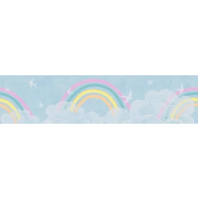 A.S. Création Children's Room Wallpaper Lilly & Luis Solid Non Woven with Cloud Border, 5,00 m x 0,13 m, Multicoloured, Blue, White, Made in Germany, 771451.