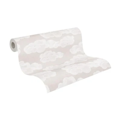 A.S. Création Children's Room Wallpaper Lilly & Luis Solid Non Woven with Cloud Effect, 10,05 m x 0,53 m, Beige, Brown, White, Made in Germany, 771433.
