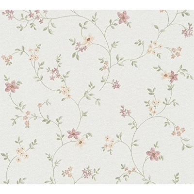 A.S. Création Flower Wallpaper Self Adhesive Country House Style Floral Pink Cream with Flowers 0.52 x 2.5 m Made in Germany