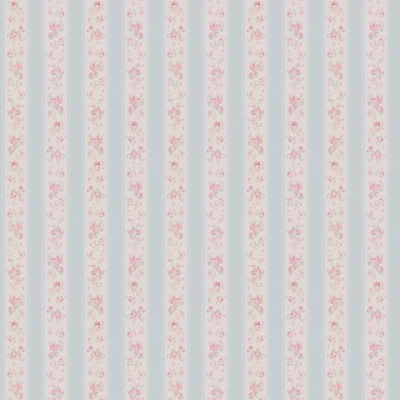 WallpaperDirectCreate an endearing vintage aesthetic, drawing inspiration from quaint countryside cottage gardens with this floral striped wallpaper. Clusters of dainty roses are a charming motif repeated throughout the design. Shown here in a subdued blue colourway, with a textured finish. Free pattern match.