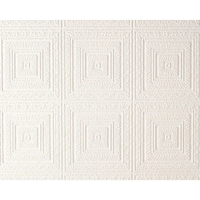 WallpaperDirectA white deeply textured wallcovering with a smart square within square geometric tile effect. Suitable for painting with a colour of your choice.