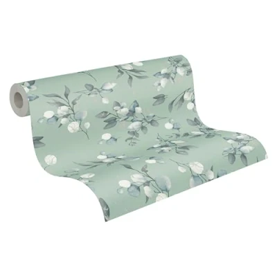 A.S. Création Non Woven Wallpaper Floral in Green Grey Blue Modern Flower 397687 10.05 m x 0.53 High Quality Flowers Made Germany