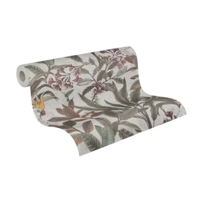 A.S. Création Non Woven Wallpaper Jungle in Green, Cream, Pink, High Quality 397484 10.05 m x 0.53 m, Look Design for Living Room, Made Germany