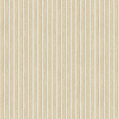 A stylish wood effect design with slats or batons of wood evenly placed on a lightly textured hessian weave effect background. Shown in the Cream wood colourway with a white ground. The design has been created not to have a pattern repeat, so can be hung as a free match.