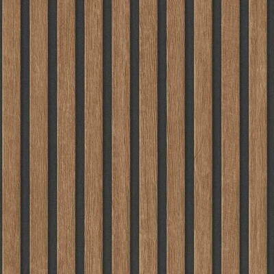 WallpaperDirectA stylish wood effect design with slats or batons of wood evenly placed on a lightly textured hessian weave effect background. Shown in the Maple wood colourway with a brown ground. The design has been created not to have a pattern repeat, so can be hung as a free match.