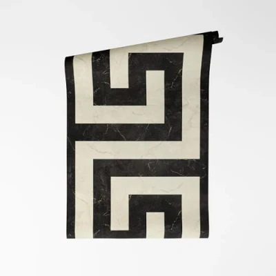 A.S. Création Versace VI Greek 791741 Non Woven Wallpaper Meander Geometry with Medusa Motif, Gold & Neutrals, Vinyl Surface, Geometric Wallpaper, Graphic, 10.05 m x 0.70 m, Black/White
