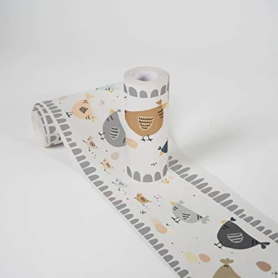 A.S. Création Wallpaper Borders Self Adhesive Lovely Kids Chicken Party for 5.00 m x 0.155 Grey White Creme Made in Germany 403727