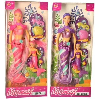PACKAGE CONTENTS: Set includes two mermaid dolls - one set is in vibrant purple and one set is in bright pink, each with matching accessories and underwater-themed decorative elements - You will receive 1 set DESIGN FEATURES: Each doll features a detailed mermaid tail design, removable cape, and stylish outfit with sea-inspired accents and pearlescent finish AGE SUITABILITY: Perfect for children aged 3 years and above, these dolls provide imaginative underwater play opportunities COLLECTIBLE VALUE: Part of the AtoZ Mermaid Sister Party Dolls collection, these dolls make excellent additions to any toy collection DISPLAY READY: Comes in an attractive window box packaging with underwater scene backdrop, perfect for both play and display, Manufacturer: Padgett Bros (AtoZ)