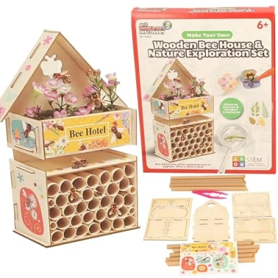 A to Z World of Discovery DIY Wooden Bee House and Nature Exploration Set, STEM Educational Toy, Ages 6+