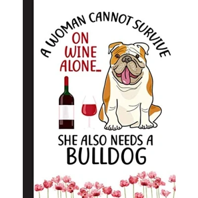 A Woman Cannot Survive On Wine Alone She Also Needs Bulldog Notebook: Blank Lined Journal for English Bulldog, Dog Lovers, Mom, Dad and Pet Owners 8.5x11 with College Ruled Pages