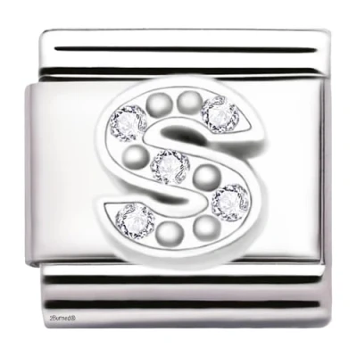 A Z Letter Cubic Zirconia Italian Charm Links for 9mm Bracelets (Letter S)