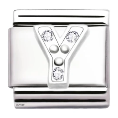 A Z Letter Cubic Zirconia Italian Charm Links for 9mm Bracelets (Letter Y)
