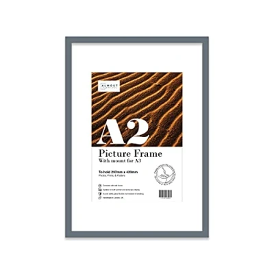 A2 Grey Picture Frame With White Mount for A3 (29.7 x 42cm 11.7 16.5in) Print, Photo, or Poster. Portrait and Horizontal Wall Hooks
