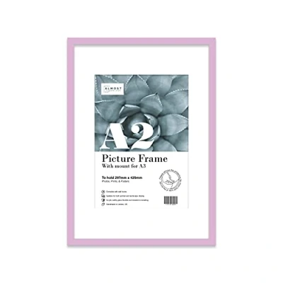 A2 Lilac Picture Frame With White Mount for A3 (29.7 x 42cm 11.7 16.5in) Print, Photo, or Poster. Portrait and Horizontal Wall Hooks
