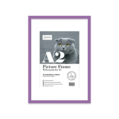A2 Purple Picture Frame With White Mount for A3 (29.7 x 42cm 11.7 16.5in) Print, Photo, or Poster. Portrait and Horizontal Wall Hooks