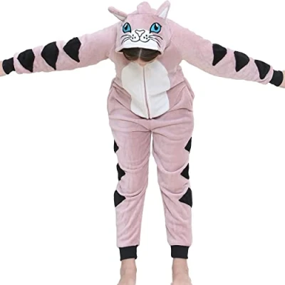 A2Z 4 Kids Animal Onesie for Girls Boys Super Soft Costume E.S Cat Dusty Pink 9 10