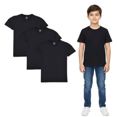 ESSENTIAL WEAR: This 100% cotton T-shirt is ideal everyday essential wear for Unisex Girls Boys. It is a staple of Uniesx wear, from wearing it under a jacket or jumper to making it part of a PE kit. The top comes in different colours; you only have to choose your favourite. It suits all-year-round wear and can be paired with almost any outfit. ALL-DAY COMFORT: This shirt is made using soft-feel cotton and has a classic fit, providing all-day comfort. It is short-sleeved, allowing for extra movement, and the moisture-wicking fabric absorbs sweat, keeping you feeling dry. Its neckline makes it a highly comfortable wardrobe staple and an ideal base for layering combinations. HIGH QUALITY BASIC T SHIRT: Thanks to it is 100% fine Cotton composition, the t shirt is lightweight making it breathable, and soft to provide maximum comfort as well as not irritating your child skin. This short sleeve t shirt has a round shape crew neck. For best fit simply check your size from the size chart provided. CLASSIC COLORS FOR EVERY OCCASION: Simplicity meets sophistication with our range of timeless colors Black, Blue, Grey, Red, Navy, Royal, White, Lime, Green, Aqua, Wine, Yellow and Sky Blue These shades effortlessly match any outfit, making them a staple in your child. wardrobe. BUNDLE OF JOY: Why limit yourself to just one T-shirt when you can have Three Our pack of Three plain T-shirts is a real treat for your wardrobe. Perfect for school uniforms, PE class, and sportswear, these shirts are comfortable to wear and easy to machine wash. They come in a classic fit and are suitable for various uses.