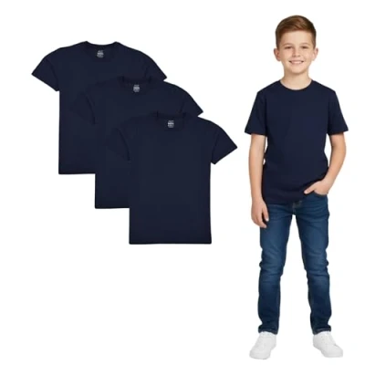 ESSENTIAL WEAR: This 100% cotton T-shirt is ideal everyday essential wear for Unisex Girls Boys. It is a staple of Uniesx wear, from wearing it under a jacket or jumper to making it part of a PE kit. The top comes in different colours; you only have to choose your favourite. It suits all-year-round wear and can be paired with almost any outfit. ALL-DAY COMFORT: This shirt is made using soft-feel cotton and has a classic fit, providing all-day comfort. It is short-sleeved, allowing for extra movement, and the moisture-wicking fabric absorbs sweat, keeping you feeling dry. Its neckline makes it a highly comfortable wardrobe staple and an ideal base for layering combinations. HIGH QUALITY BASIC T SHIRT: Thanks to it is 100% fine Cotton composition, the t shirt is lightweight making it breathable, and soft to provide maximum comfort as well as not irritating your child skin. This short sleeve t shirt has a round shape crew neck. For best fit simply check your size from the size chart provided. CLASSIC COLORS FOR EVERY OCCASION: Simplicity meets sophistication with our range of timeless colors Black, Blue, Grey, Red, Navy, Royal, White, Lime, Green, Aqua, Wine, Yellow and Sky Blue These shades effortlessly match any outfit, making them a staple in your child. wardrobe. BUNDLE OF JOY: Why limit yourself to just one T-shirt when you can have Three Our pack of Three plain T-shirts is a real treat for your wardrobe. Perfect for school uniforms, PE class, and sportswear, these shirts are comfortable to wear and easy to machine wash. They come in a classic fit and are suitable for various uses.