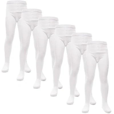 A2Z 4 Kids Cotton Rich 6 Pack Uniform School Tights Comfortable Schoolwear UF White 2 3